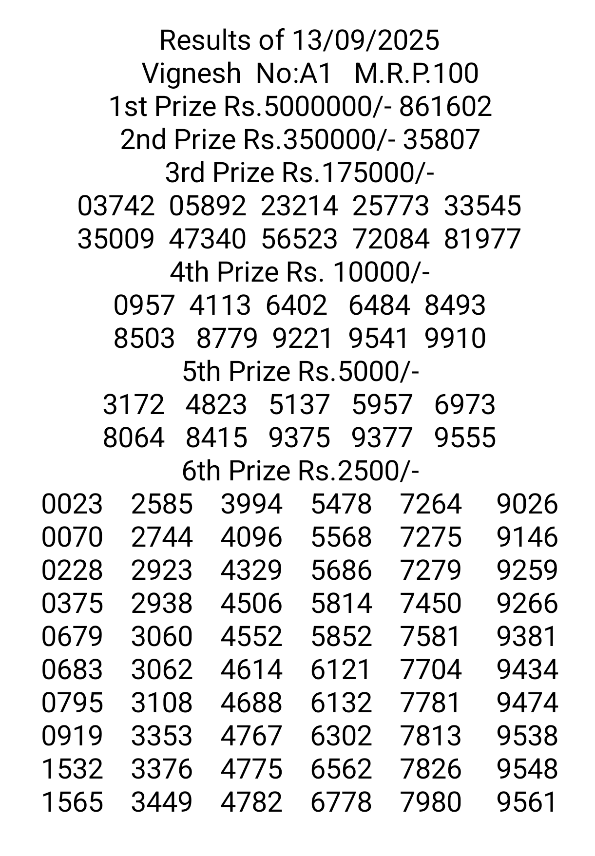 A1Lottery 13.09.2025 Result Today 1 PM, 6 PM, 8 PM Nagaland State Lottery LIVE